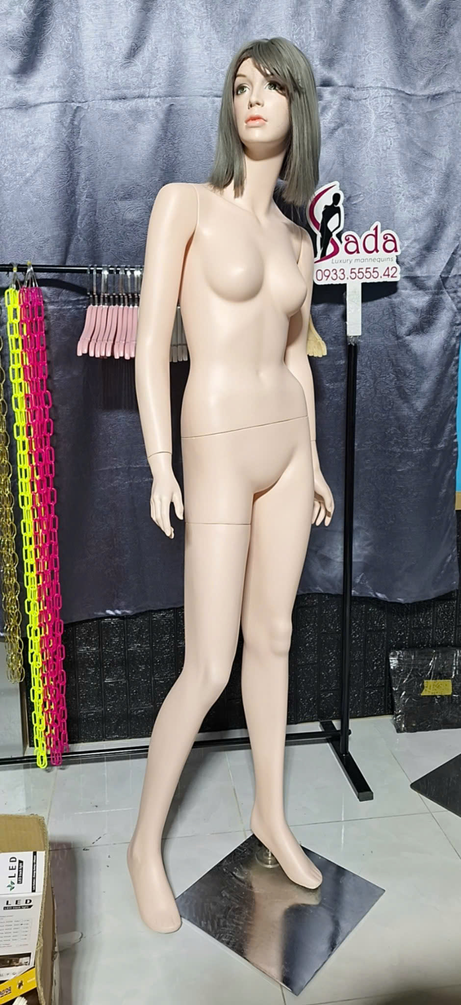 Cao 175cm luôn đế sắt . Kiểu tay cho màu da gồm: 2 tay xuôi, 2 tay chụm, 1 tay chụm-1 tay thẳng, 2 tay dang V,đặt hàng vui lòng báo chi tiết chọn kiểu tay nhé, nếu không chọn mẫu tay thì mặc định giao tay thẳng chân thẳng nhé . hàng thanh lý từ 750-880k- vui lòng in zalo chọn mẫu.